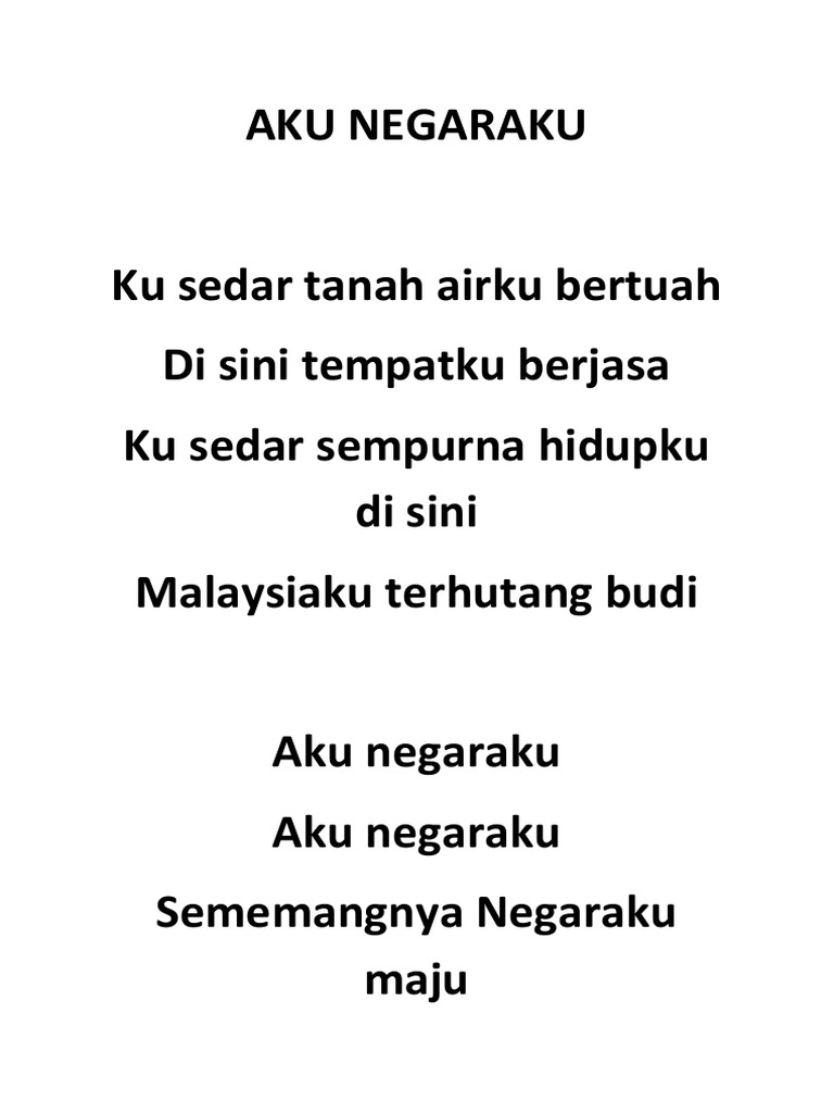 Semua pelajar dan guru di seluruh negara wajib menyanyikan lagu aku negaraku dalam perhimpuan sekolah bermula 22 mei 2017. Aku negaraku (lirik) with chords mp3 duration 2:12 size 5.04 mb / malcolm music 1. Lagu aku negaraku merupakan lagu bernada patriotik terbaru bagi negara malaysia. Aku negaraku merupakan lagu patriotik terbaru yang kini diwajibkan dilagukan di perhimpuan mingguan semua sekolah di bawah kementerian pendidikan malaysia. Negaraku negaraku ku beri sepenuhnya ku beri sepenuhnya demi negaraku oh darahku hiduplah sepenuhnya dirgahayu semua.