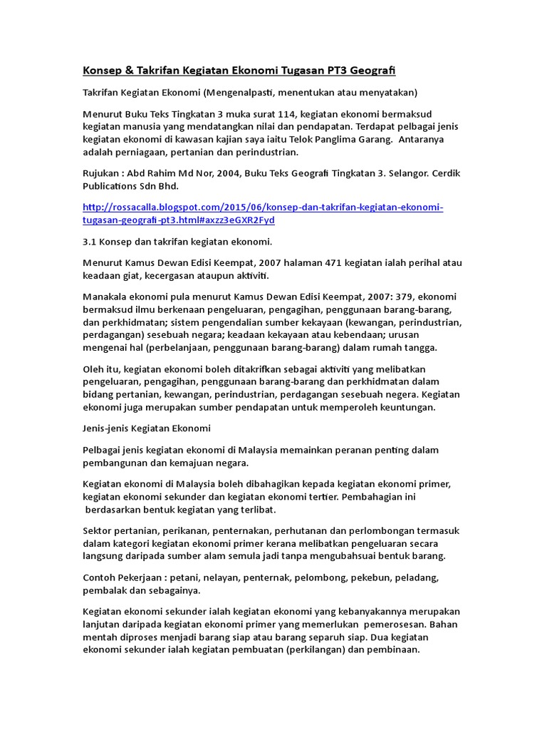 Tugasan Geografi Pt3 2015 Kegiatan Ekonomi Docx from imgv2-1-f.scribdassets.com Jawaban (b) salah karena kegiatan ekonomi menghasilkan barang dan jasa. Kuliah kerja lapangan geografi, ditulis untuk membagi ilmu dan sebagai tambahan wawasan ilmu geografi di wilayah surakarta, wonogiri dan yogyakarta. Perhatian buat pelajar tingkatan tiga yang bakal menduduki pentaksiran tingkatan 3 (pt3) pada tahun ini. Azwardah safyah bt khairul azwan. Ya, kegiatan ini adalah unsur dalam kehidupan yang sudah pasti dilakukan oleh masyarakat. Perubahan pandangan masyarakat thdp jumlah anak 3. Jika, di ujung jalan, anda ingin mencoba pekerjaan lapangan, sebagai spesialis sistem informasi geografis, maka ia akan menjadi bagian dari deskripsi pekerjaan anda yang wajib dilakukan. Contoh jawapan tugasan geografi pt3 2016 pengangkutan* lihat juga :