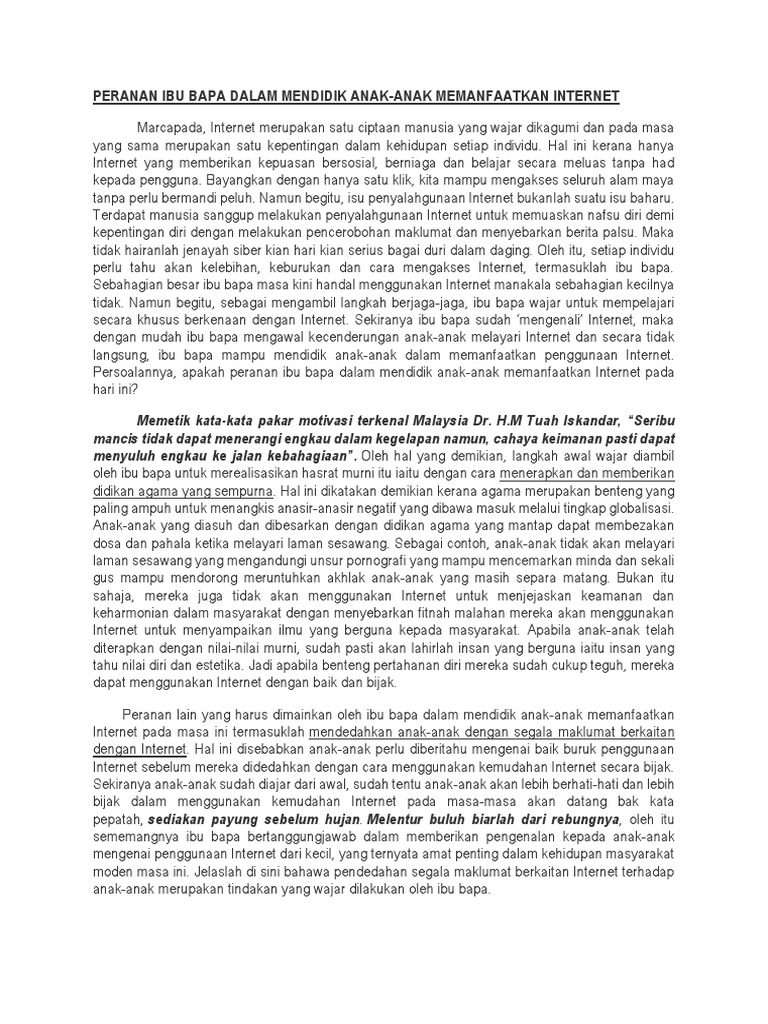 Related : Peranan Ibu Bapa Mengawal Penggunaan Internet / Karangan ini ditulis sebagai kerja rumah yang diberikan oleh guru saya sepanjang bergelar seorang murid sekolah menengah (tingkatan 4 dan tingkatan 5)..