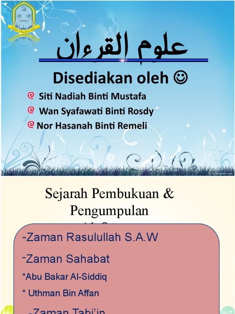 Sejarah pengumpulan al qur'an dimasa abu bakar pemateri : Ternyata dengan 7 dialek ini memudahkan pembacaan. Berikut sejarah pengumpulan al quran serta penulisannya, sampai sekarang al qur'an bisa kita baca dengan mudah. Allah menurunkan al quran sebagai petunjuk bagi manusia. Oleh fateh abdul shukor dikemaskini 22 jan 2020.