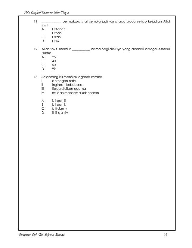 Bab 1 manusia perlu bersyukur 1.1. Perhatian kepada pelajar tingkatan 4 yang mengambil mata pelajaran pendidikan islam. Menuntut penganutnya beramal dan berusaha untuk memajukan diri, bangsa dan negara. Strategi menjawab tasawwur islam spm dengan berkesan. 。 koleksi soalan, latihan, nota tasawwur islam tingkatan 4 + jawapan.
