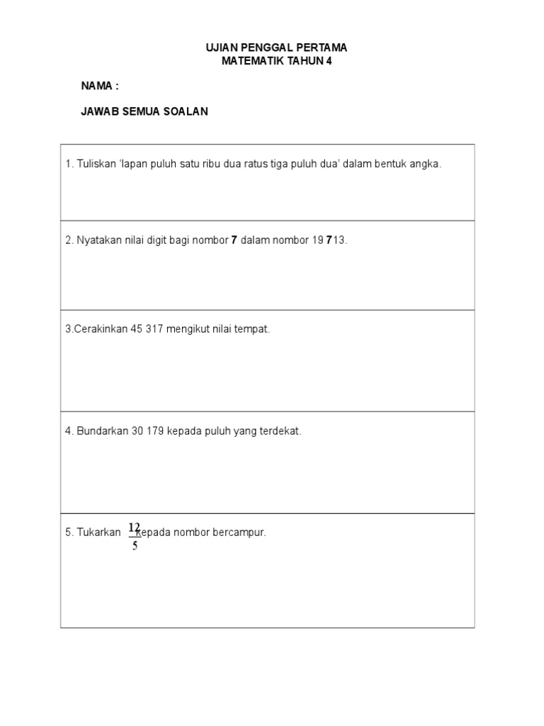 Related : Soalan Ujian Matematik Tahun 4 : Kertas 2 Ujian 1 Matematik Tahun 4 - Ujian math tahun 2 kertas 2 via www.slideshare.net..